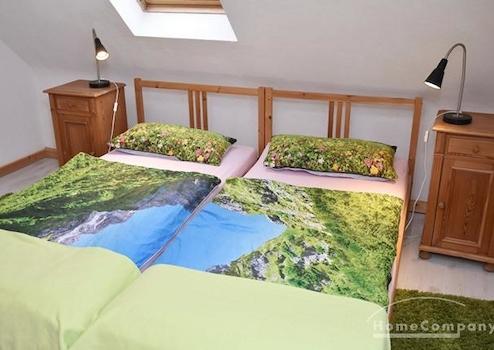Schlafzimmer mit 2 Betten 100x200 cm, Nachtkonsolen und Kleiderschrank.