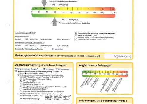 Endenergiebedarf beträgt 40.80 kwh/(m²*a).