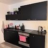 Die helle und moderne 2-Zimmer-Erdgeschoß-Wohnung besticht mit ihren 47 qm durch eine sehr gelungene Raumaufteilung. Die matt-schwarze Küche mit Markengeräten von Bosch bietet noch ausreichend Platz für einen Esstisch und eine schöne Couchecke.