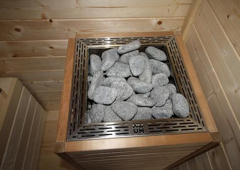 Sauna: Außensauna in massiver Blockbohlenbauweise mit Vorraum. Hochwertiger Saunaofen mit 10 kW von HUUM + Steuerung.