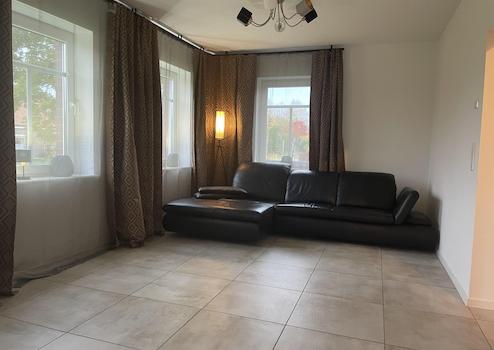 Wohnzimmer: Ein helles und großzügiges Wohnzimmer erwartet Sie, ideal zum Entspannen und Genießen von gemeinsamen Momenten mit Familie und Freunden. Große Fensterflächen mit Iso- Dreifachverglasung bringen viel Tageslicht herein und schaffen neben dem verbesserten Schall- und Wärmeschutz eine freundliche Atmosphäre.