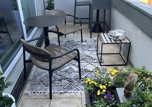 Die stylische Wohnung befindet sich im 3. OG eines 7-Parteien-Hauses und ist durchgängig hochwertig ausgestattet - z.B.: amerikanisches Kirschholzparkett, ein modernes, sehr komfortables Bad mit bodenebener Dusche, (elektr.) Fußbodenheizung, Handtuchheizkörper, hochwertigen Designerfliesen von Porcelanosa, Natursteinboden, Badmöbeln von Duravit und Wanne (Sanitärobjekte Duravit Starck 3) aus 2015, sowie ein zusätzliches Gäste-WC. Eine Klimaanlage mit drei Innengeräten aus 2022 sorgt jederzeit für ein angenehmes Raumklima und großzügige, dreifach verglaste Fensterlösungen mit UV- und Wärmeschutz sorgen für eine energieeffiziente, noch schönere Aussicht. Die schicke Einbauküche mit allen wünschenswerten Elektrogeräten und Natursteinplatten gibt es ohne Aufpreis dazu, die Dachterrasse mit Platz für vier bietet einen Traumblick, Glasfaser liegt im Haus und die neue Gasheizung aus 2024 sorgt für effizienteres Heizen und niedrige Nebenkosten.