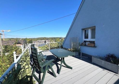 Dachgeschoss: 3 Zimmer, Badezimmer, Flur, 2 Balkone