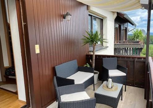 Die 230qm Wohnfläche sind aufgeteilt auf 3 Etagen. Im ersten OG ein großes Wohnzimmer mit großem Kachelofen. Der Balkon im ersten OG bietet einen schönen Weitblick.