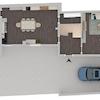 Die Aufteilung der Wohnung im Erdgeschoss: Diele, Wohnzimmer, Küche mit Essbereich, Abstellraum, Hauswirtschaftsraum.