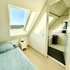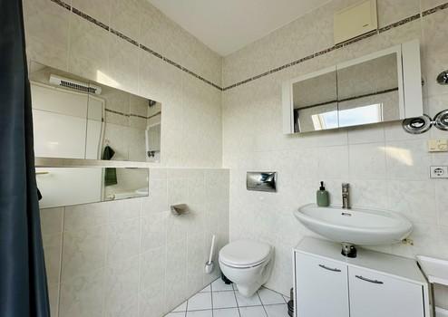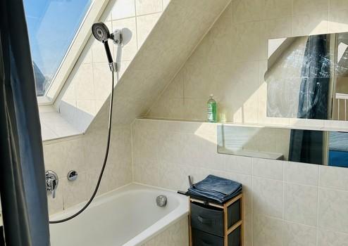 The attic apartment impresses with its large windows and a very bright and open structure. The entrance area leads to the guest toilet and the spacious living and dining area. From here you have access to the south-west facing sun terrace. The adjoining kitchen offers enough space for social cooking and for placing a small table.