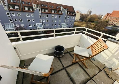 Then above the rooftops of Berlin, a bright and modern 2 room maisonette top floor apartment is waiting for you! The apartment extends over the 4th and 5th floor in a well-kept apartment building and has a living space of 62m2.