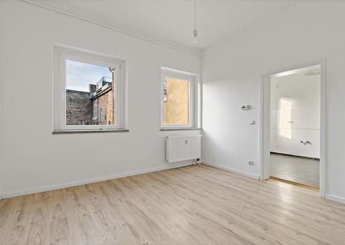 Von hier gelangen Sie in das erste helle und großzügig geschnittene Wohn-/Schlafzimmer, das mit seinen angenehmen Proportionen einen gemütlichen Mittelpunkt der Wohnung bildet. Angrenzend daran befindet sich die Küche, die den Übergang zum zweiten Wohnraum schafft. Dieser eignet sich aufgrund seiner ruhigen Lage optimal als Schlafzimmer oder privater Rückzugsort.
