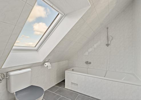 Das Badezimmer ist kompakt, verfügt jedoch über ein Fenster und ist mit einer Badewanne ausgestattet.