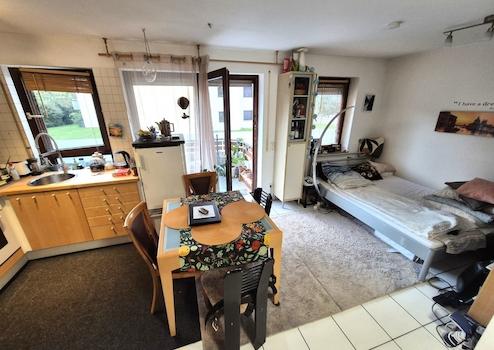 - - heller Wohn-/Ess-/Schlafbereich, Küche, Bad