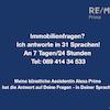 Doch wenn wir uns ausnahmsweise mal eine Mütze Schlaf gönnen, haben wir vorgesorgt: Unsere digitale Assistentin „Alexa Prime“ von RE/MAX Prime ist rund um die Uhr für Sie da. Sie können jederzeit anrufen – 24 Stunden am Tag, 7 Tage die Woche – und bekommen Antworten auf Ihre ersten Fragen oder können direkt einen Besichtigungstermin vereinbaren.