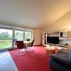 Im Obergeschoss befinden sich zwei weitere voll ausgestattete Zwei-Zimmer-Ferienwohnungen mit jeweils ca. 54 m² Wohnfläche. Beide Einheiten verfügen über ein modernes Duschbad sowie einen offenen Wohn- und Küchenbereich. Besonders hervorzuheben ist der traumhafte Ausblick: Vom Wohnbereich blickt man auf das gepflegte Grundstück, während sich aus den Schlafzimmern ein weiter Blick über die angrenzenden Felder bis hin zum Schweriner See eröffnet – ein Panorama, das Seltenheitswert besitzt.