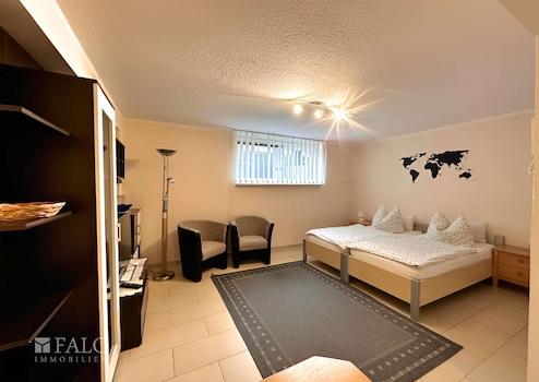 - Souterrain-Ferienwohnung 2: ca. 33 m², 1 Zimmer, Einbauküche mit Essbereich, Duschbad mit Fenster