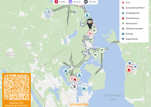 Einkaufsmöglichkeiten für den täglichen Bedarf, medizinische Versorgung, Kindertagesstätten sowie Schulen befinden sich sowohl in Seehof selbst als auch im nahen Schwerin und sind schnell erreichbar. Die Kombination aus stadtnaher Lage, guter Verkehrsanbindung und hoher Lebensqualität macht Seehof bei Schwerin zu einem gefragten Wohnstandort für Familien, Berufspendler und Ruhesuchende gleichermaßen.