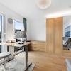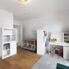 Die Küche ist über eine Schiebetür mit dem Wohnbereich verbunden und kann je nach Bedarf offen oder getrennt genutzt werden. Drei weitere Zimmer bieten flexible Nutzungsmöglichkeiten als Schlaf-, Kinder-, Arbeits- oder Gästezimmer. Alle Räume sind gut geschnitten und vielseitig möblierbar.