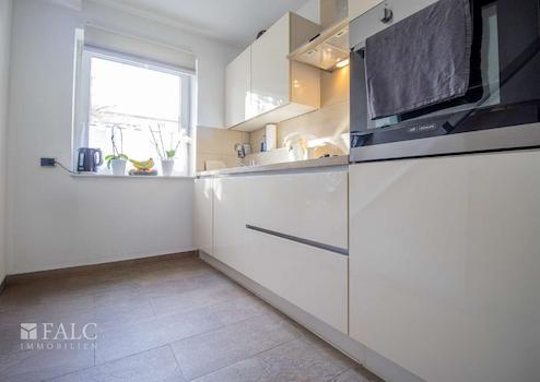 Zu Ihrer Linken befindet sich der räumlich abgetrennte Kochbereich mit genügend Platz für einen Esstisch und eine Sitzgelegenheit.
