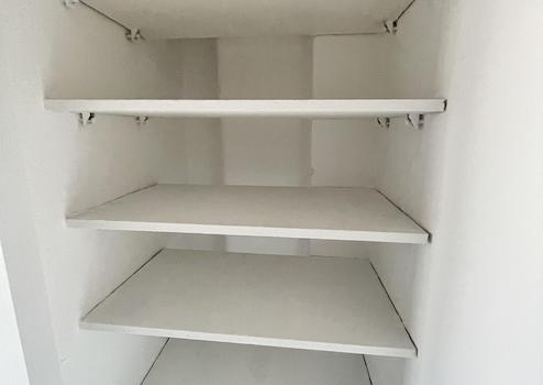 In der Küche befindet sich eine neue Einbauküche auf zwei Seiten, in der sie beim gemütlichen Kochen die Aussicht genießen können. Zusätzlich bietet die Küche einen kleinen Abstellraum mit Regalen.