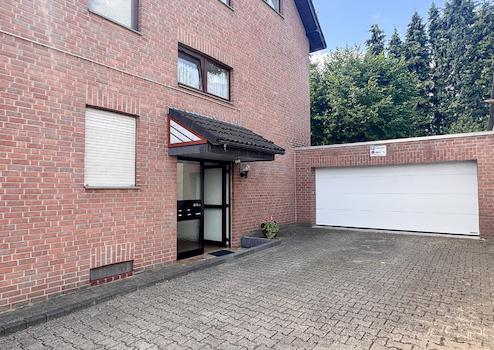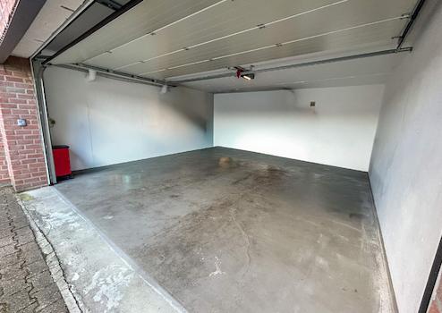 Vor dem Hauseingang befindet sich eine Doppelgarage, die als separates Teileigentum zusammen mit der Wohnung zum Preis von 19.000 € zzgl. erworben werden kann. Die Garage ist 4,50 Meter breit und verfügt über ein renoviertes Sektionaltor der Marke Hörmann, das im Jahr 2021 mit einem neuen Torantrieb sowie zwei Funkfernbedienungen ausgestattet wurde. Direkt vor der Garage befindet sich eine Auffahrt mit Platz für zwei weitere Fahrzeuge, die ebenfalls exklusiv genutzt werden kann.