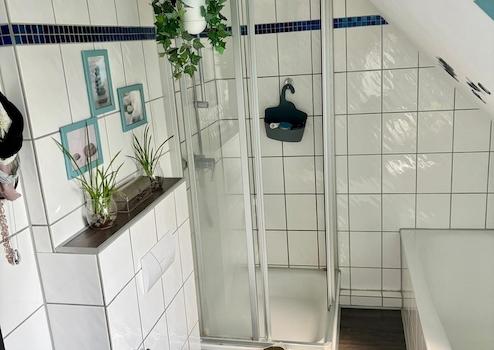 Wir bieten hier unser sehr schönes und gepflegtes Einfamilienhaus an. Es handelt sich um ein Niedrigenergiehaus (damals), welches als Fertighaus in Massivbauweise erstellt wurde. Die Außenwände bestehen aus Styroporblöcken, die innen mit Moniereisen bestückt wurden und dann mit Beton aufgefüllt wurden. Im Erdgeschoss befinden sich ein Gäste-WC, ein Schlafzimmer, ein einladender Eingangsbereich, Wohn- und Esszimmer in offener Bauweise, eine Küche (Einbauküche von 2011, gut erhalten, inklusive) und ein Hauswirtschaftsraum. Im Wohn- Essbereich ist ein Kaminofen verbaut, der im Winter ein wohliges Klima erzeugt. Durch eine Treppe gelangt man in das erste Obergeschoss, wo sich drei weitere Schlafzimmer und das Bad befinden. Im Bad sind Dusche, WC, Waschbecken und eine Badewanne verbaut. Über eine Treppe geht es ins 2. Obergeschoss, wo sich zur Zeit das Arbeitszimmer befindet, eine andere Nutzung ist allerdings kein Problem.