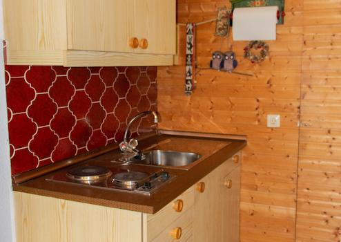 * Küchenzeile mit Spüle, Kühlschrank, 2-Platten-Kochfeld