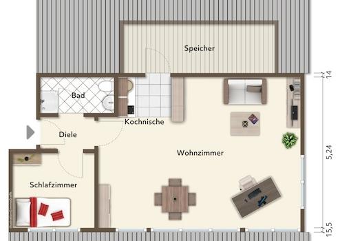 * helle 1,5-Zimmer-Wohnung, ca. 45,55 m²