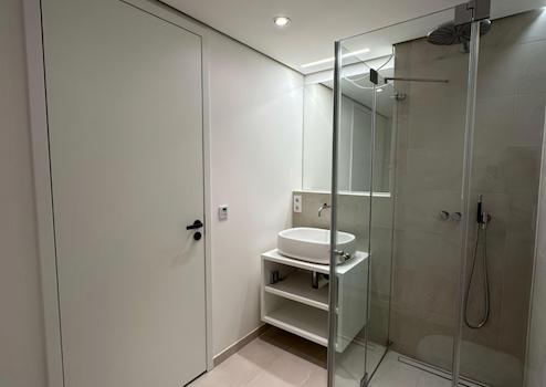 * modernes Duschbad mit Waschtischunterschrank, Hand- und