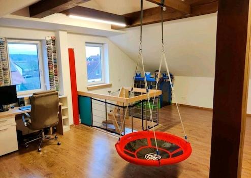 Das Highlight der Wohnung bietet das ausgebaute Dachgeschoss 45 m² für einen zusätzlichen Homeoffice- / Gäste oder Kinderbereich. Dieses kann in mehrere Zimmern unterteilt werden. Auch ein weiteres Badezimmer kann im Dachgeschoss eingerichtet werden. Die Anschlüsse sind vorhanden.