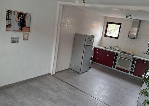 Eine zentral gelegene, modern ausgestattete Einbauküche und Essbereich, die von beiden Wohneinheiten genutzt wird