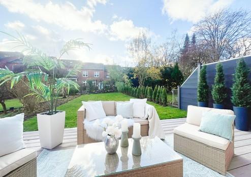 - neue WPC-Terrasse mit Sichtschutz und Südausrichtung