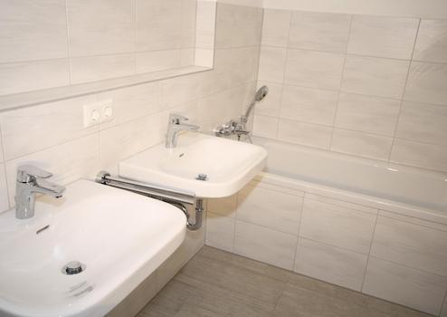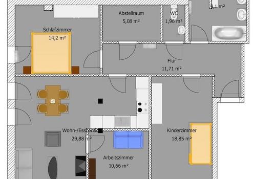 Vollbad, Duschbad, Einbauküche, Gäste-WC, Laminat, Fliesen