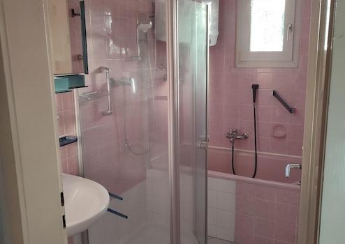 Helle Wohnung mit 2 Zimmern, Küche mit EBK und Bad. Im Bad gibt es eine Dusche und Badewanne. WC separat. Vom Wohnzimmer aus kann man die ca. 50m² teilüberdachte Terrasse mit Außendusche betreten. Von der Terrasse geht eine Treppe in den idyllischen Garten mit Freisitz.