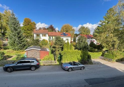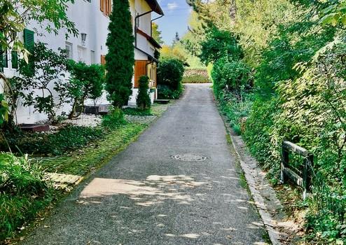 An der Gartengrenze im Süden verläuft nur ein schmaler Eigentümerweg, der ausschließlich von Fußgängern und den dortigen Anliegern für Besorgungen gelegentlich genutzt wird. Straßenverkehrslärm oder Gefahren für Kinder gibt es hier praktisch nicht.