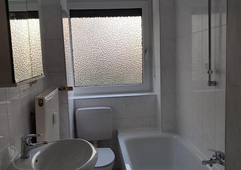 - gefliestes Tageslichtbad mit Spiegelschrank und Badewanne