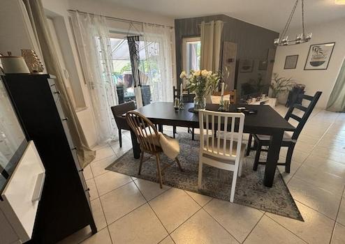 Platz hat man nicht nur im Wohn- Essbereich, auch die Küche ist geräumig und mit der hellen Einbauküche ein echter Blickfang.
