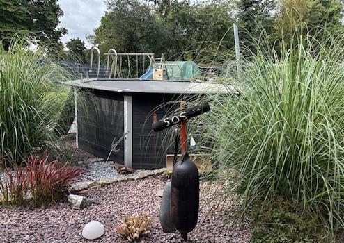 Der hauseigene Spielplatz samt Spielgeräte und das Gartenhaus erhält der Käufer kostenlos dazu!