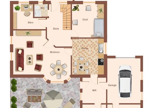 Und so ist das Haus im Erdgeschoss aufgeteilt: