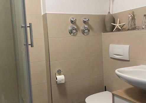 Die beiden Bäder wurden bereits komplett saniert. 2020 wurde die Dusche mit einer neuen Kabine ergänzt.