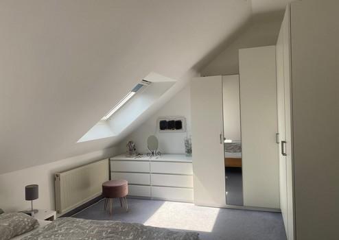 In Diele und Wohnzimmer ist heller Laminatboden verlegt. In den Schlafzimmern und der Galerie ist ein Teppichboden. Die Dachfenster haben sowohl einen Sonnenschutz auf der Außenseite als auch eine Verdunkelungsfunktion auf der Innenseite.
