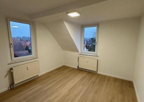Der helle Wohnbereich bietet ein angenehmes Wohnambiente und vielfältige Gestaltungsmöglichkeiten. Typisch für eine Dachgeschosswohnung sorgen die wenigen Dachschrägen für einen besonderen, gemütlichen Charakter, ohne die Nutzbarkeit der Räume einzuschränken.