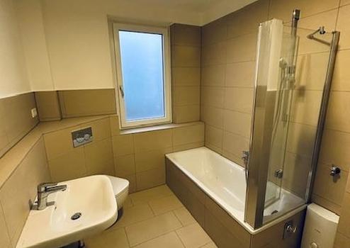 Das Badezimmer ist zweckmäßig und neuwertig ausgestattet und fügt sich funktional in das Gesamtkonzept der Wohnung ein.