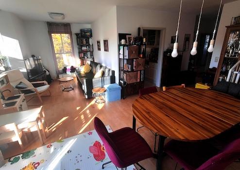 Die Wohnung erstreckt sich über das Ober- und Dachgeschoss und bietet eine ideale Raumaufteilung: