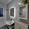 - Waschbecken-Unterschränke, beleuchtete Spiegel in den Badezimmern