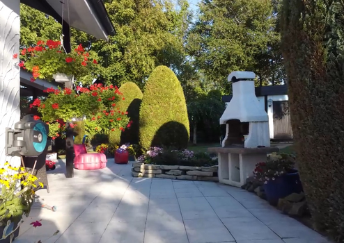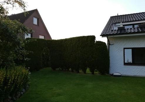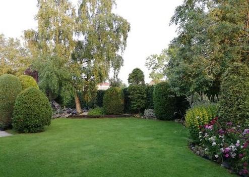 Hervorzuheben ist, dass der nach Süden ausgelegte Garten durch seinen tollen Baumbestand im Sommer absolut blickdicht ist. Hinter der großen Hecke befindet sich ein weiteres Grundstück, welches nicht bebaut werden darf, hier genießt man also absolute Ruhe.
