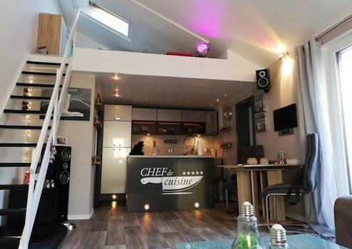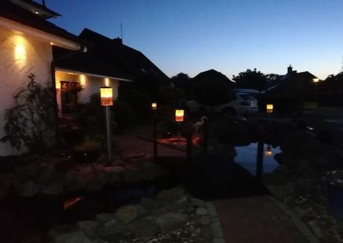 Ein besonderes Highlight im Außenbereich ist das große Blockhaus. Dieses dient auch super als Partyraum und ist mit einer Zapfanlage inkl. Kühlschrank, umfangreicher Diskobeleuchtung, Kaminofen, Sitzgelegenheiten, Theke, Strom, Wasser und einer separaten Toilette ausgestattet.