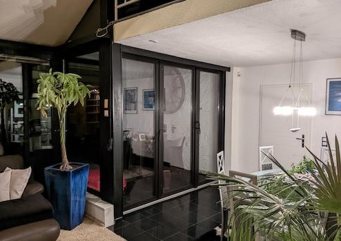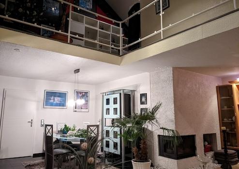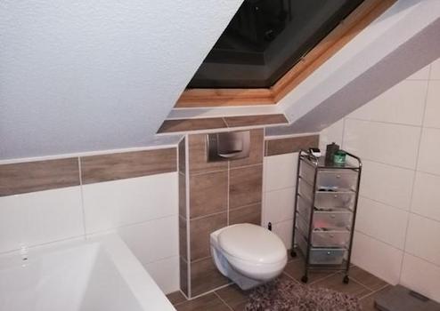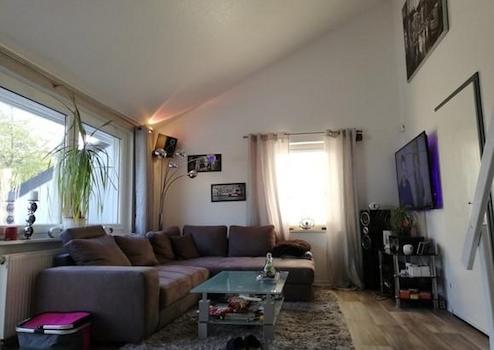 Die Einliegerwohnung mit ca.75 m2 ist über einen separaten Eingang und Parkplatz nebst Garten im Außenbereich zu erreichen. Diese ist aktuell wie folgt aufgeteilt: Im Eingangsbereich befindet sich ein kleiner Flur mit Treppe zur Wohnung. Diese ist mit einem großzügigen Wohn- und Essbereich mit moderner Einbauküche und Zugang auf einen Balkon, einem Schlafzimmer, einer Empore mit Dachfenster und einem Badezimmer mit Badewanne und Dusche ausgestattet.