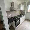 Eine Einbauküche mit Elektrogeräten ist vorhanden.