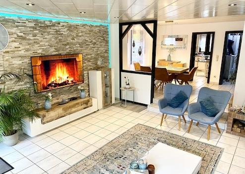 • Kamin im Wohnzimmer für gemütliche Atmosphäre