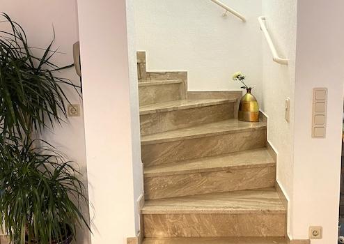 • Zeitlose weiße Fliesen, Marmortreppenhaus, moderne Details