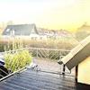 • Großes dreieckiges Fenster im Loft für viel Tageslicht