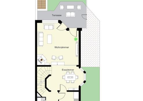 • Splitlevel-Wohnbereich mit zwei Stufen zum Essbereich